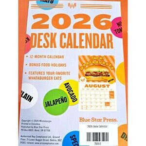 New 2026 Whataburger Orange Calendar for Desk Display 10x5