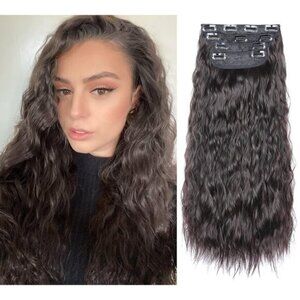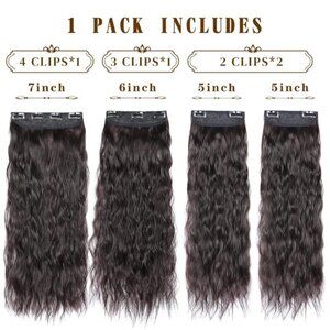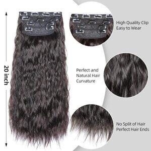 * New Style, New Surprises: This is a new style of hair extension, this unique curl is very beautiful, will surprise you. Compared to traditional hair extensions, 4pcs clip in hair extensions can provide you with more volume with no glue, no tape, causing no damage to your hair and scalp and with less shedding. Vigorous clip in extensions are made with heat resistant fiber synthetic but look completely natural like real.