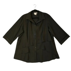 New $225 Finley Women's Black Cotton Jenna Button-Down Ruffle Poplin Top Size 2X