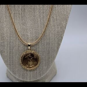 New 22k gold American Eagle 1/2 ounce coin mounted in 14k gold coin bezel