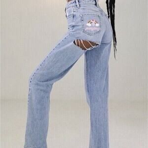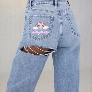 New 23 000 PLAYBOY Light Blue Back Slash 90’s Boyfriend Jeans By PacSun Rainbow