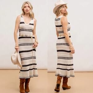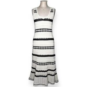 New $249 JOIE Crochet Knit Midi Dress Sleeveless Striped Ivory Coastal Chic M