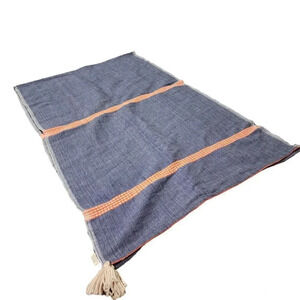 New LemLem Women Blue Wool Stripe Rectangle Woven Tolo Tassel Scarf Size 74L 25W
