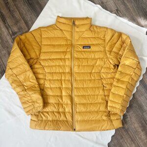 New $279 Patagonia Men's L Down Sweater Full Zip Puffer Jacket Pufferfish Gold