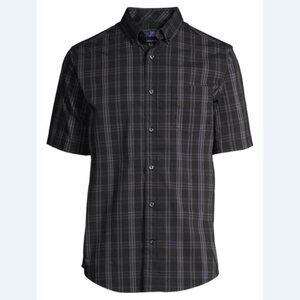 New: 2XL 50-52 Men's Black Plaid Button Down SS Shirt