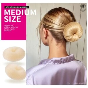 Create perfect buns with this donut hair bun maker set (3 pieces). Cream color for a natural look. Perfect for kids and adults.