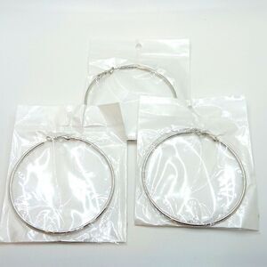 New 3 Ĺarge Pairs Silver Hoops New In Package Women's