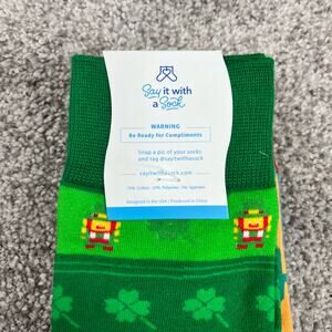 Three pairs of socks, size large. Say it with a sock. Fun designs. Really spice up your soccer game with these adorable socks.