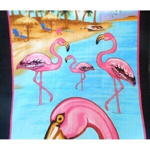 This brand new 'Flamingos on the Shore' bath or beach towel will catch some eyes by the pool or anywhere you take it. It is made of 100% cotton while it is a thinner towel the quality is still high and we know you will love it. The design shows a group of flamingos in an sunset ocean shore scene with seagulls, a rowboat some beach chairs and umbrellas. Be sure to see all of the pictures in our listing and check our other items. Thanks for reading.