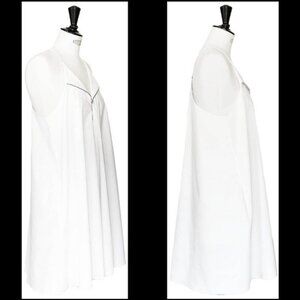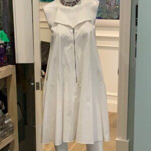 Brand new, never worn, no tags. 3.1 Phillip Lim white racerback trapeze dress with dainty skinny spaghetti straps, exposed zipper front and easy a line fit. String strap dress with zipper closure at foldover collar neckline. Tent style. Triangle racer back with thin shoulder cord spaghetti straps. Front zipper with two side slit pockets along the seams. Approximate measurements: armpit to armpit 16”, length 34”. Very light, easy to wear and timelessly edgy minimalist dress. Size 0. S8.
