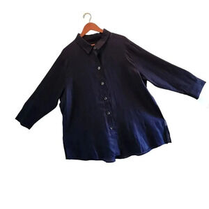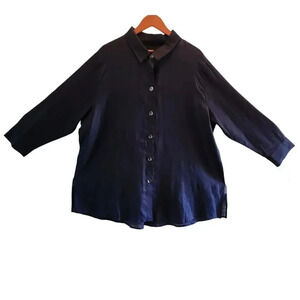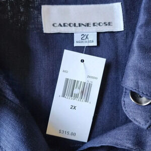 New $315 Caroline Rose Gabardine Shirt Size 2x Blue 100% Linen Button Down