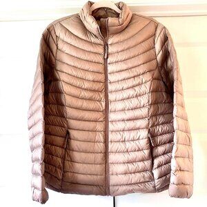 New 32 DEGREES Ultra Light Down Packable Puffer Jacket Metallic Taupe L