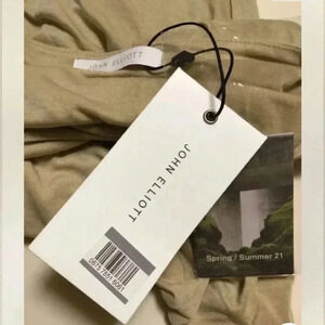 New $328 JOHN ELLIOTT Sand Tan Tencel Sleeveless Twist Muscle Mini Dress US 4 John Elliott size 1. Ultra soft slim fit dress. Lightweight jersey-knit fabric allows for easy draping. Deep cutout on the top layer with coverage on the inside layer. Folded at the bottom hem to create stacking and subtle ruching around the hip. Made in Los Angeles. 100% Tencel.