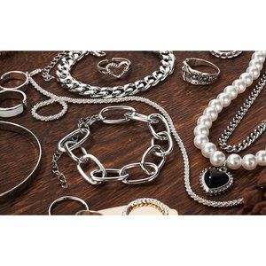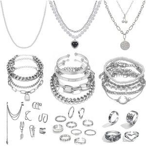 New 36 PCS Silver Plated Jewelry Set with 3 PCS Necklace, 12 PCS Bracele…