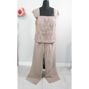 New 3-Pc Size 16W Champagne Lace & Chiffon Pants Set Formal Wedding Bridal Guest