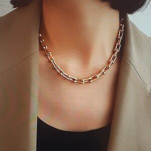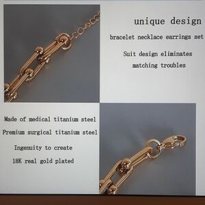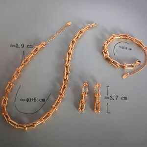 Stylish And Sophisticated U-Shaped Stainless Steel Steel Horseshoe Buckle Bracelet, Earring, Necklace Set. Chain: 40cm +5cm Extension