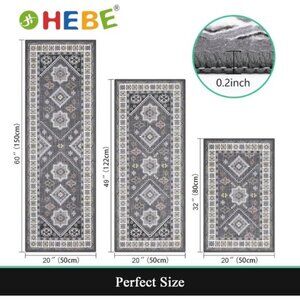 New 3-Piece Boho Kitchen Rug Set, Non-Slip, Washable Mats for Kitchen & Hallway