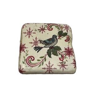 Add a festive touch to your holiday gatherings with this set of 4 Coldwater Creek Holly Bird Coasters. Each coaster features a colorful bird pattern, making them an eye-catching addition to your table setting. The coaster set comes in a new condition and is a part of the Coldwater Creek Holiday Collection.