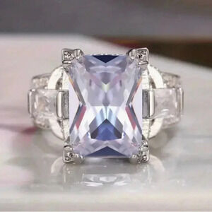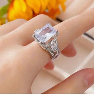 New! 4 Prong Square Cut Silver-Plated Zircon Ring