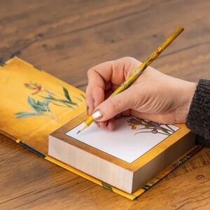 -Hard cover note block has 300 sheets of white paper with accent design. Sheet size 4.88" x 4.88".