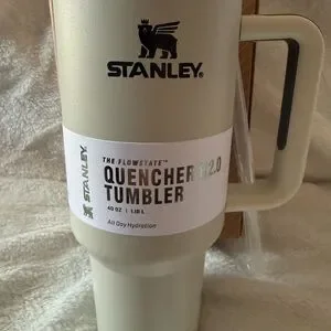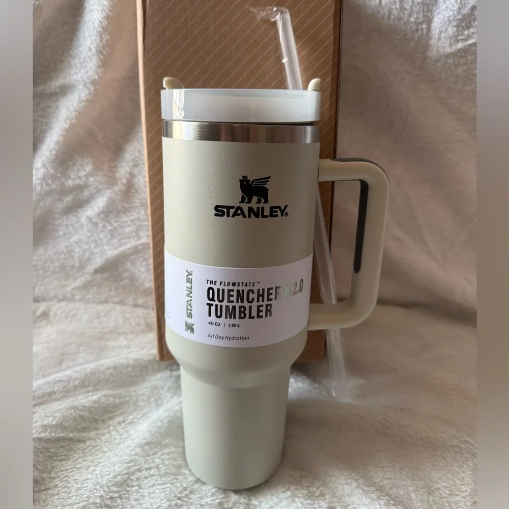 New 40oz Stanley Quencher Tumbler in Elegant Cream with Straw
