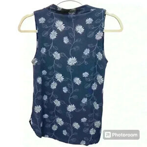 This beautiful sleeveless top features a vibrant blue floral pattern with a pleated V-neckline and a pullover closure. The lightweight polyester blend material makes it perfect for casual occasions.