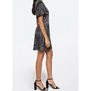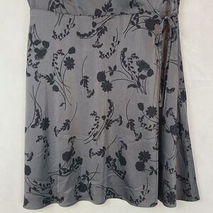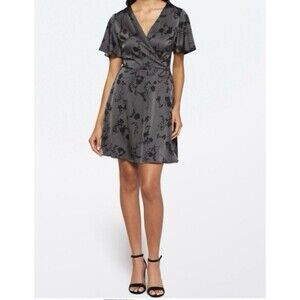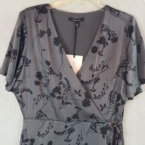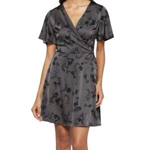 New 41 Hawthorn W's (L) Gray & Black Floral Satin Flutter Sleeve Faux Wrap Dress