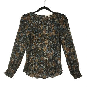 New $450 Veronica Beard 100% Silk Size 6 Chiffon Tooley Pintuck Blouse Smocked. Pintucks add subtle dimension to this airy, floral Veronica Beard blouse. Smocked elastic cuffs gather the long sleeves. Button back keyhole. Semi-sheer.