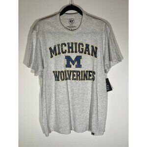 New '47 Michigan Wolverines light gray distressed faded logo M GO BLUE! tshirt