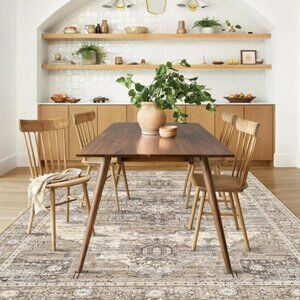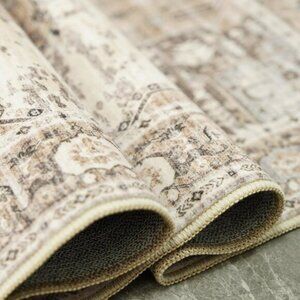 New 4x6 Beige Washable Area Rug, Vintage Non-Slip Carpet for Home & Room Decor