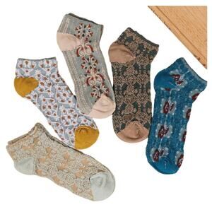 New! 5 Pairs Vintage Court Style Socks Floral Jacquard Textured Low Top Regency