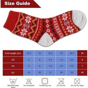 High Quality Material】Women winter socks are made of high quality cotton,polyester and wool. The women warm socks are soft, lightweight, breathable, cozy, warm and durable, keeping your feet warm and healthy during cold weather. 【Perfect Size & Care】Women wool socks are free size 22.5 to 25cm, suitable for women US shoes size 5 to 9.They are elastic and perfectly fit for your feet, please do not iron them and suggest washing them by hand and washing before wear. 【Multi-Function】Womens thermal socks are suitable for many occasions, you can wear them as office, school, hiking, outdoor, sport, home, work in spring, fall, winter or in any cold weather. 【Thoughtful Gift】Womens winter comfy socks make the perfect present in winter for mom, girlfriend, daughter, wife, as birthdays, Christmas socks gift, or women socks gift for her to show your care and love.