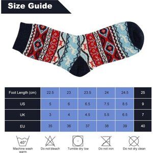 【High Quality Material】Women winter socks are made of high quality cotton,polyester and wool. The women warm socks are soft, lightweight, breathable, cozy, warm and durable, keeping your feet warm and healthy during cold weather. 【Perfect Size & Care】Women wool socks are free size 22.5 to 25cm, suitable for women US shoes size 5 to 9.They are elastic and perfectly fit for your feet, please do not iron them and suggest washing them by hand and washing before wear. 【Multi-Function】Womens thermal socks are suitable for many occasions, you can wear them as office, school, hiking, outdoor, sport, home, work in spring, fall, winter or in any cold weather. 【Thoughtful Gift】Womens winter comfy socks make the perfect present in winter for mom, girlfriend, daughter, wife, as birthdays, Christmas socks gift, or women socks gift for her to show your care and love.