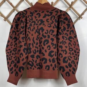 New 525 Leopard Mock Neck Pullover in Cinnamon Multi Women's Size M