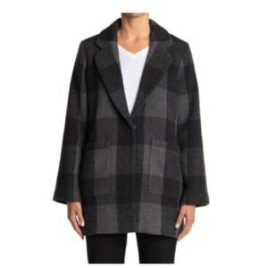 New $598 Eileen Fisher Plaid Notch Collar Coat Size Large