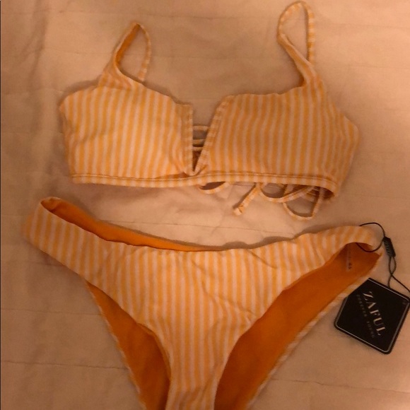 Yellow striped bikini