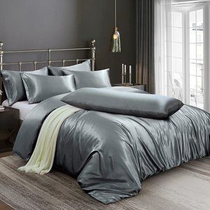 KING SATIN DUVET COVER SET - Including 1 Duvet Cover (90"x104"), 4 King Pillowcases (20x40") and 1 Body Pillowcases (20"x54") (COMFORTER IS NOT INCLUDED!).
