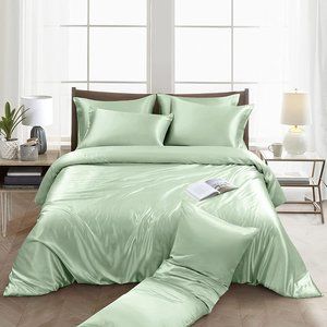 New 6 Pieces Satin Duvet Cover King Size Luxury Silky Bedding Duvet C…