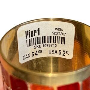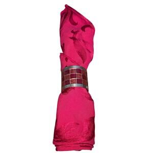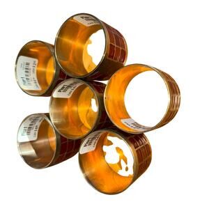New 6 Vintage Enamel & Brass Napkin Rings Orange and Red Design