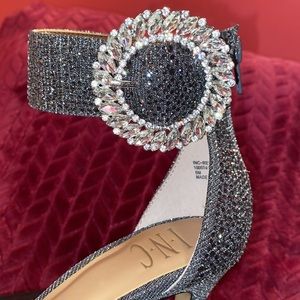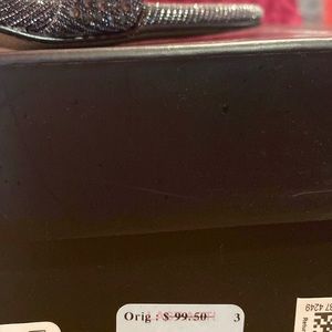Gray shinny with rhinestones. I usually wear 6 and a half in heels. This is size 6.