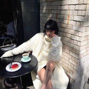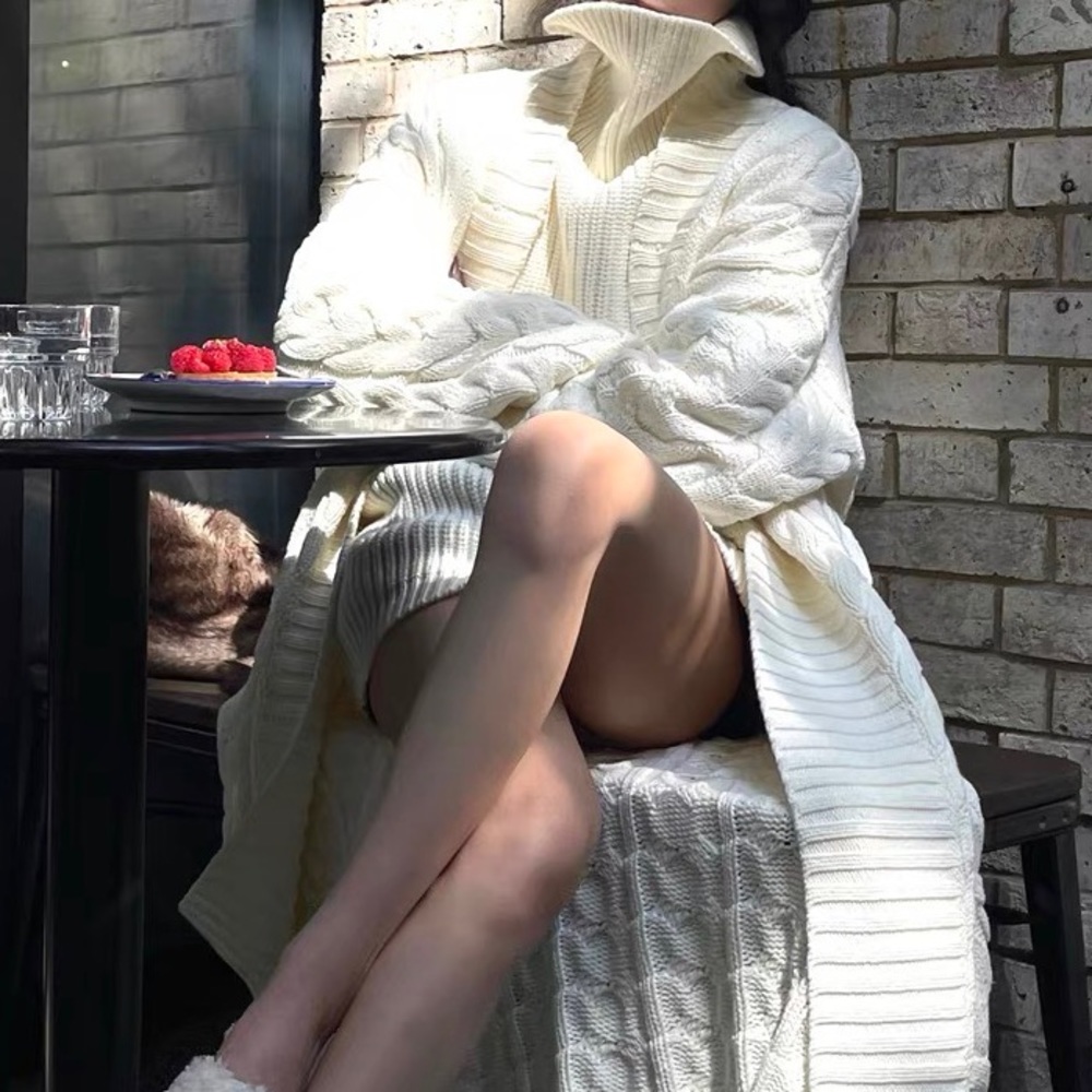 2 set . Coarse twist turtleneck sweater suit lazy feeling long cardigan two-piece set
