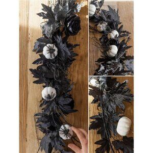 New 6FT Black Maples Leaf Garland, Halloween Fall Leaf Garland Artificial
