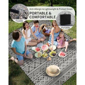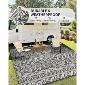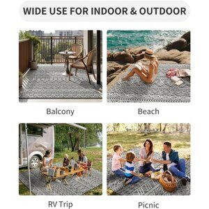 New 6x9 Waterproof Outdoor Rug, Reversible Boho Plastic Straw Patio Carpet