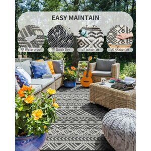 * Reversible&Versatile: A budget-friendly interchangeable reversible mat offers color and personality to your indoor outdoor space without distracting from other decoration. Boho rug with modern, versatile geometric design could be a great outdoor patio decor, balcony decor.