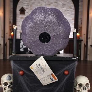 New 7” Jack-O-Lantern Pumpkin Purple Glitter Assorted Lighting Battery Operated