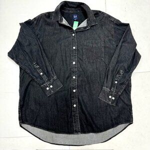 New $70 Gap Men -Denim Button up Long Sleese Shirt / size LTall/ Gray Black (85