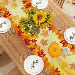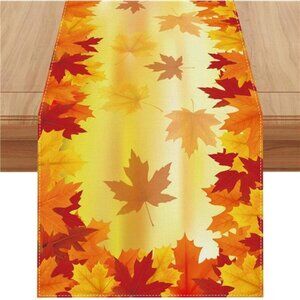 New 72'' Linen Table Runner - Orange Watercolor Maple Leaf Fall Farmhouse Decor
