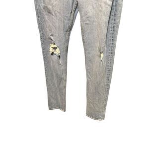 Smoke free, pet free warehouse. New without tags. Light vintage blue wash. Distressed. Slim straight fit.