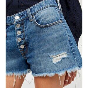 New 7FORALLMENKIND Size 30 MONROE CUT-OFF SHORT WITH EXPOSED BUTTONS PISCES BLUE