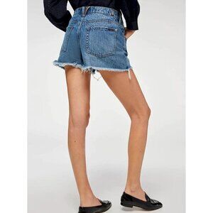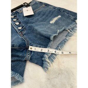 New 7FORALLMENKIND Size 30 MONROE CUT-OFF SHORT WITH EXPOSED BUTTONS PISCES BLUE